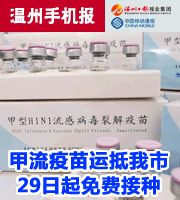 根据卫生部统一安排,首批84万份甲型H1N1流感疫苗运抵浙江,29日起开始在我省进行免费接种。其中13万份疫苗已经运抵我市。