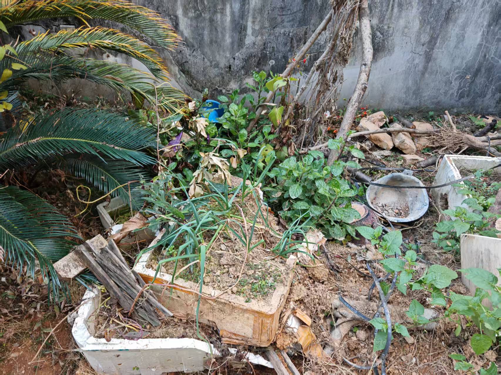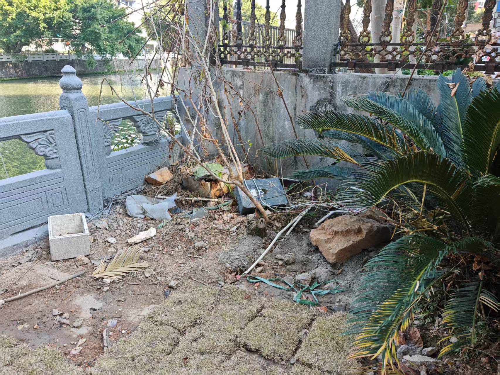 打扫前小区角落里满是垃圾